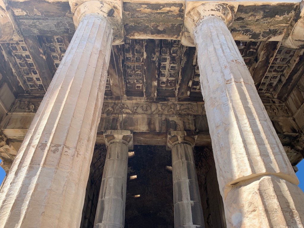 The weather is Athens tends to be on the warm side, even in late September. A rainy morning, however, cooled temperatures off into the low to mid 70s and mitigated crowds at the Parthenon, my first stop. Between the light from the sun poking through the thunderclouds, the live music from a band rehearsing in the amphitheater, and the many cats perched atop ancient columns, I really couldn’t have asked for a better visit. I also spent a couple of hours diving into the nearby Acropolis Museum (museum #1 of 3), which was built on top of literal ancient ruins. In an impressive display of passive aggressiveness, the Greeks built the museum with empty display spaces for artifacts stolen by the British. As huge as this museum is, the size doesn’t even come close to that of the National Archeological Museum. If I had to pick just one museum to return to, it would be the National Archeological Museum, where artifacts from every time in Greek history have found a home. Three hours was not nearly enough time to see everything! Heads up—if you have a phobia of pigeons, take an Uber to this museum.